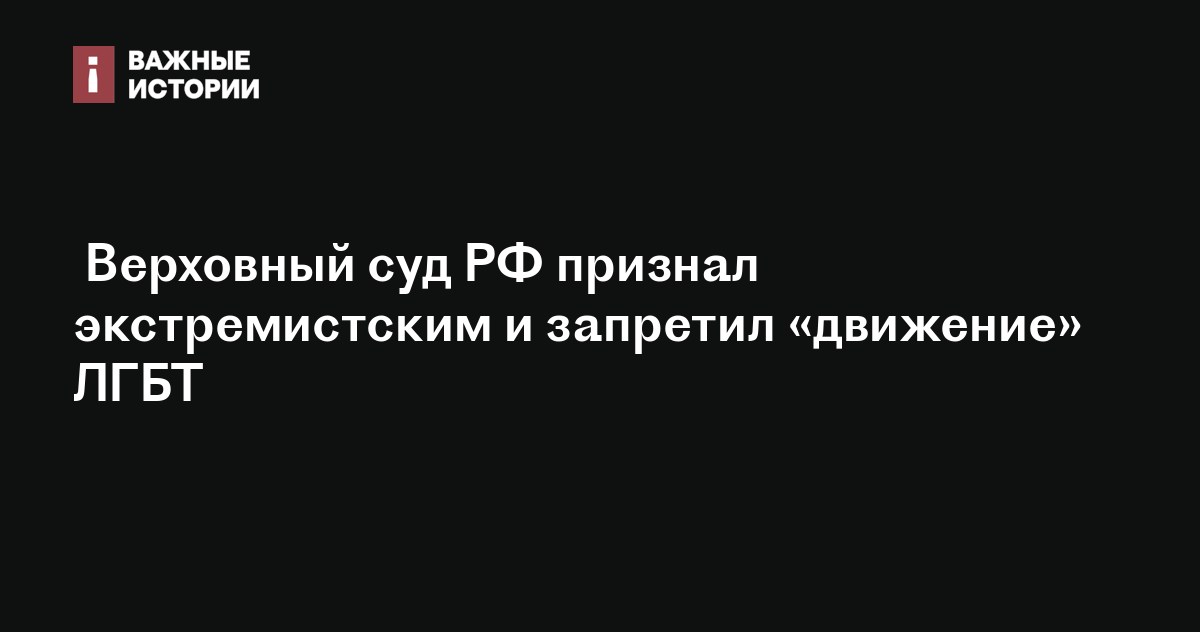 Верховный суд РФ признал экстремистским и запретил «международное движение ЛГБТ». Об этом сообщает «Медиазона».