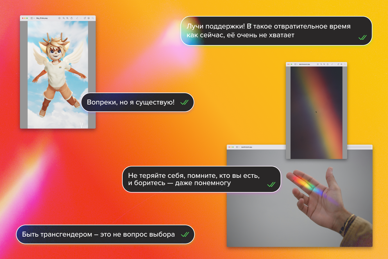 Впервые мне стало легче, когда я нашла сообщества таких же людей, как я. Кто понимает мои трудности и принимает меня. Тому, кто вписывается [в общество], трудно понять, какое облегчение бывает увидеть радугу на чьей-то сумке, похожего персонажа в телевизоре, похожую историю в телеграм-группе. Это никому не приносит вреда, а таким, как я, дает силы жить, работать, быть полезной.