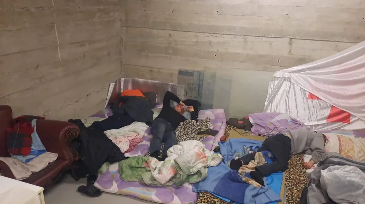Georgian border guards have given the former prisoners an unoccupied office in an unheated basement to live in. The latest photos show a new group of former prisoners using an electric stove for heating. They do, however, have mattresses and warm blankets.