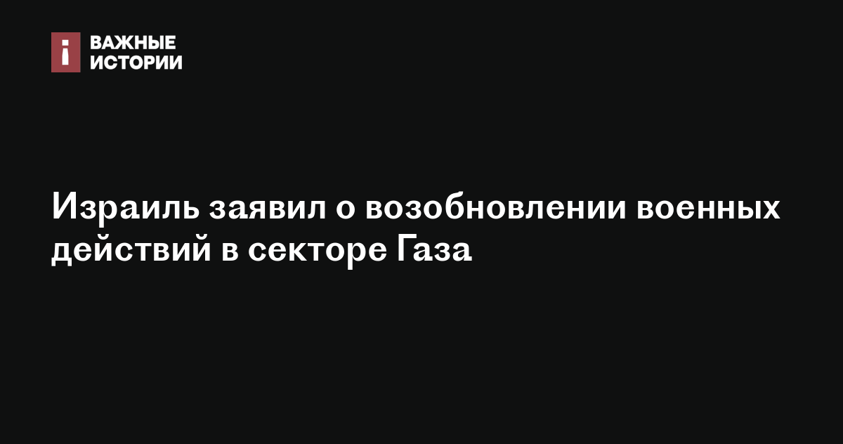Израиль заявил о возобновлении военных действий в секторе Газа