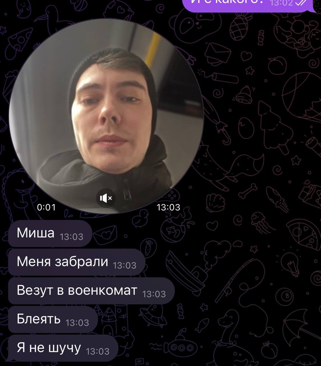 Например, сегодня телеграм-канал «Осторожно, Москва» сообщил сразу о двух случаях: 26-летнего Романа задержали на выходе из метро «Войковская», увезли в военкомат (до этого ему приходила повестка), за ночь провели медкомиссию и признали годным к службе, хотя, по словам отца, у молодого человека «серьезные проблемы со здоровьем». 23-летнего Максима из Белгорода схватили у метро «Проспект Мира». «Миша, меня забрали, везут в военкомат. Блеять, я не шучу», — успел написать он другу. Позже его отпустили благодаря помощи адвоката Максима Гребенюка.