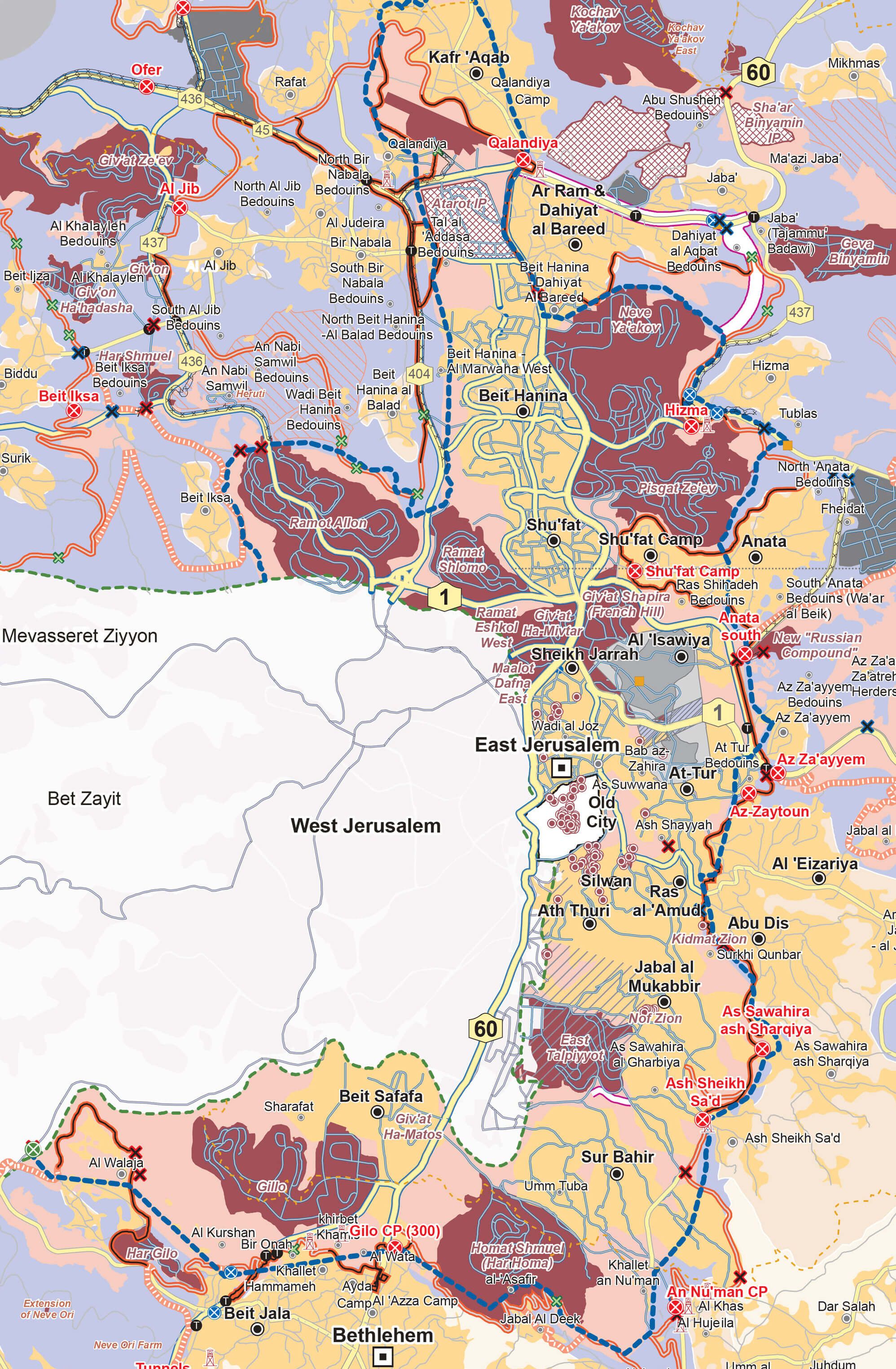 — Да. У Израиля был генеральный план Иерусалима, и это его заявленная цель. Им не удалось достичь этой цели, и они пересмотрели ее до 60/40. Но это последовательная политика в Иерусалиме — свести к минимуму палестинское присутствие и максимизировать еврейское присутствие. Маршрут, по которому проходит стена, разработан специально так, чтобы вытеснить как можно больше палестинцев за пределы центра города, отказавшись при этом от минимального количества земли.