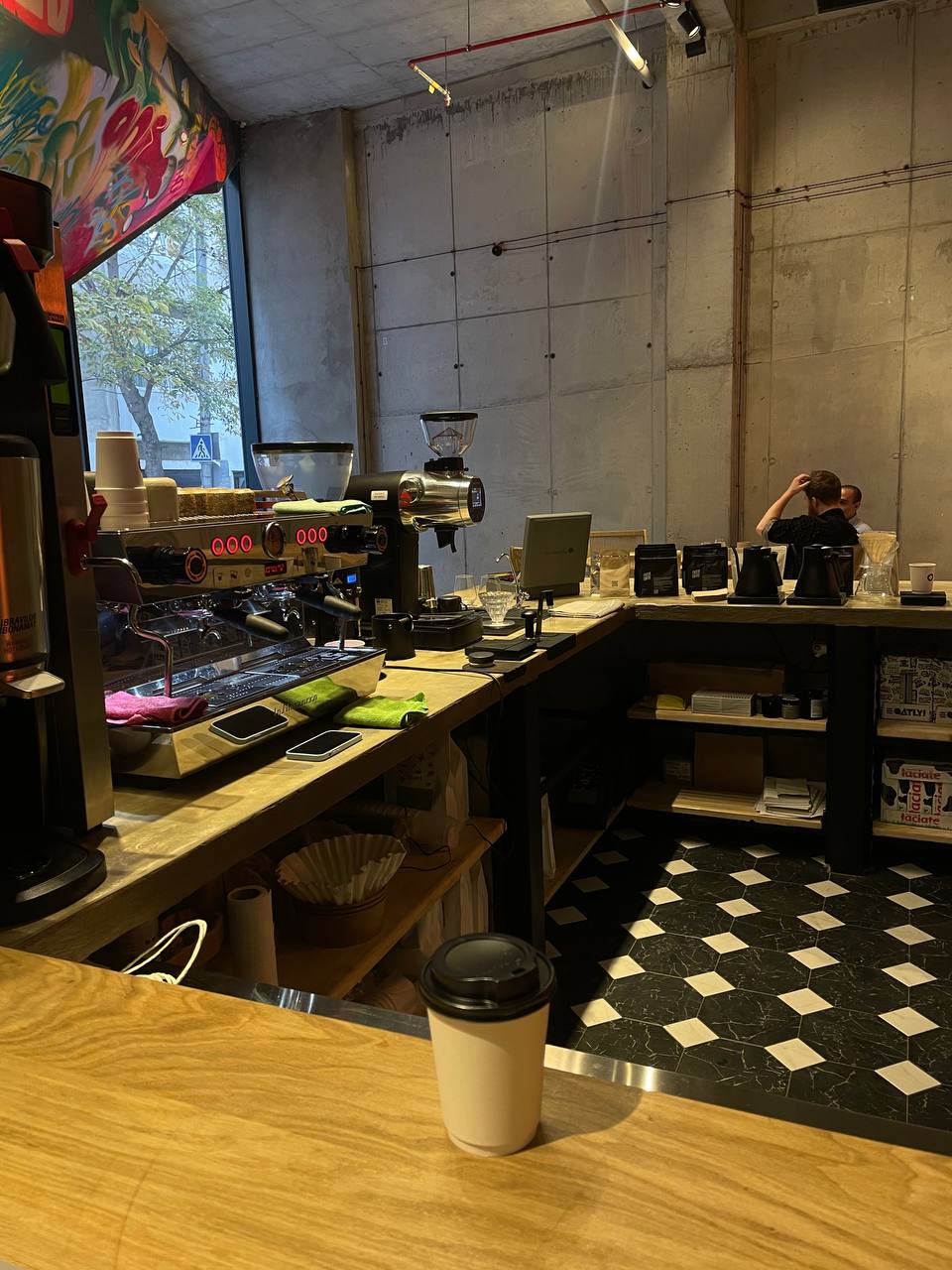 Кофейня с проработанным интерьером расположилась недалеко от коворкинга Papers. Заведение работает в техническом режиме, но там уже можно выпить спешиалти-кофе и взять на десерт круассан или пирожное — правда, цены здесь такие же (если не выше), как в других модных кофейнях в Вере.
