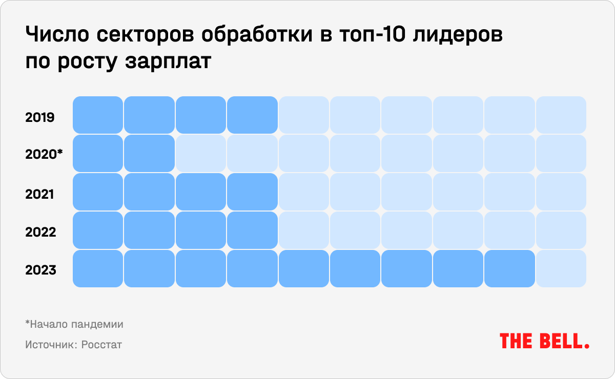 - Зарплаты быстрее всего растут в секторах, связанных с войной