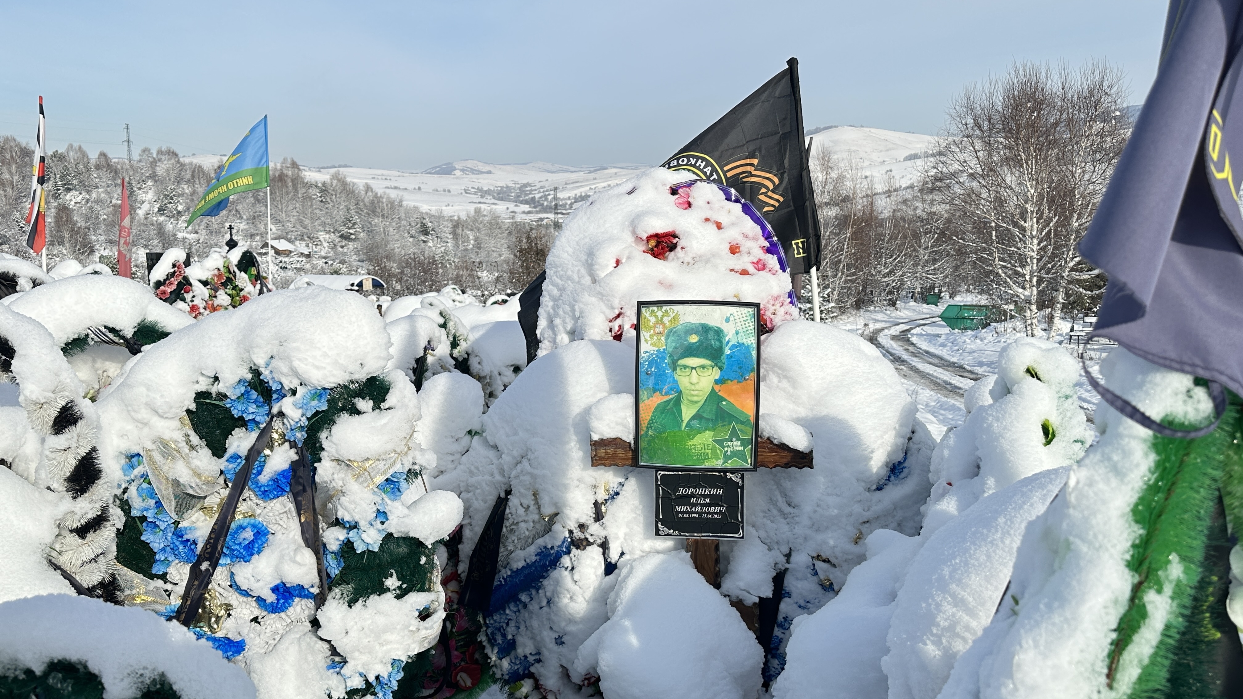 Илья Доронкин и его тезка Каханов лежат на кладбище №3 Горно-Алтайска. За табличкой "Здесь покоятся ветераны Великой Отечественной войны 1941–1945 и ветераны воинской службы" развиваются флаги ВДВ, ЧВК "Вагнер", танковых войск. По данным СМИ на 19 октября, число погибших военных из Горного Алтая составило 141 человек, в сентябре – 135 человек. Журналистам Сибирь. Реалии удалось идентифицировать 26 участников войны. Многие кресты, таблички уже покрылись ледяной коркой, и невозможно прочитать имена. А венков с гербами и триколором удостоились далеко не все. У добровольцев и вагнеровцев на могилах чаще всего одинаковые черные металлические кресты с черными табличками без фотографий.