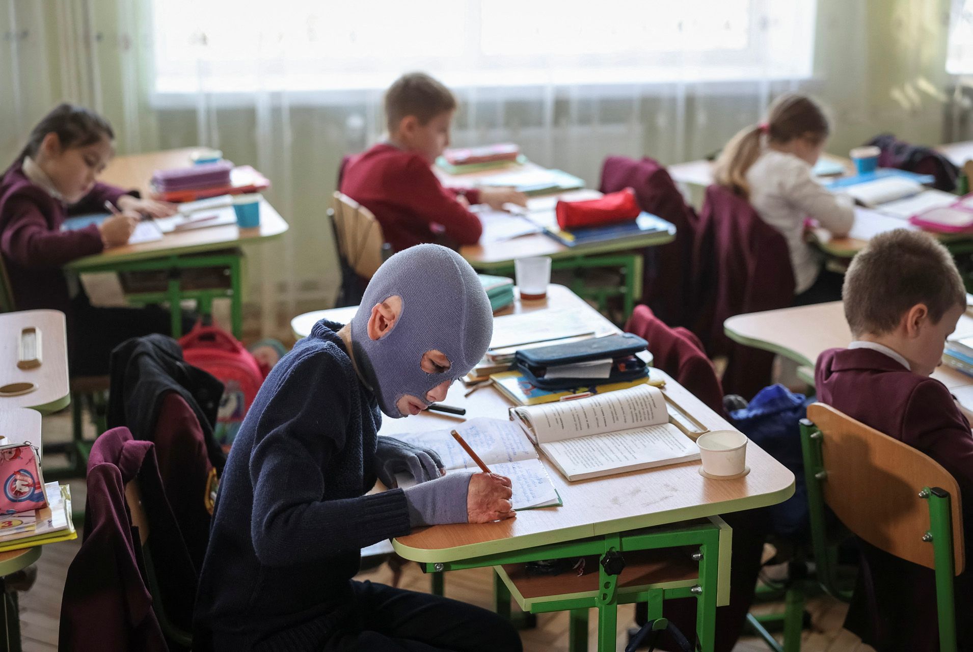 Раненый украинский мальчик на уроке в школе