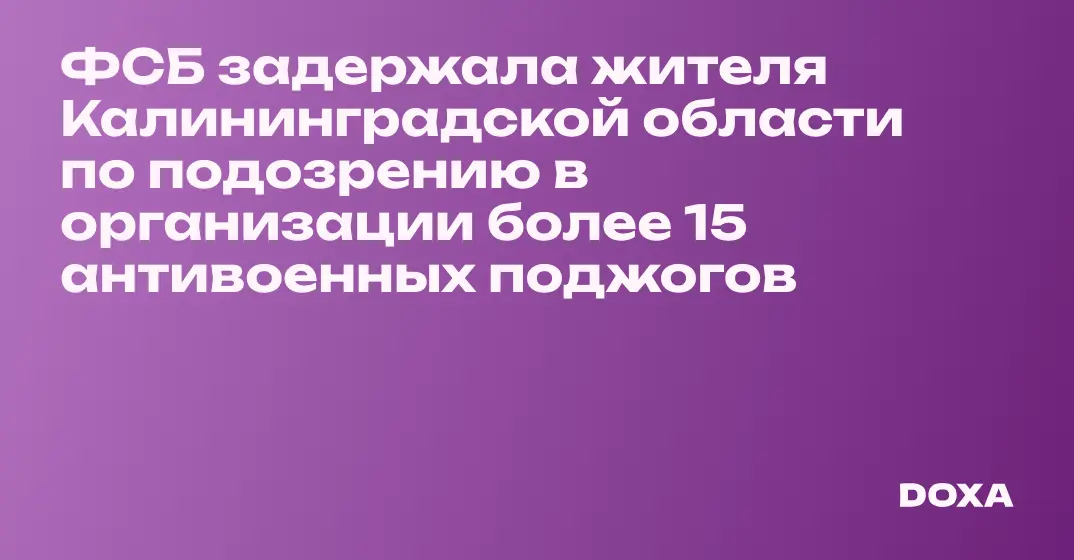 ФСБ задержала жителя Калининградской области по подозрению в организации более 15 антивоенных поджогов