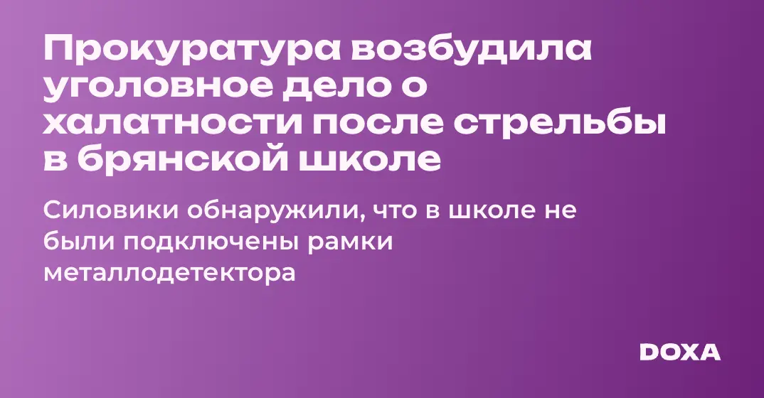 Прокуратура возбудила уголовное дело о халатности после стрельбы в брянской школе 7 декабря. Силовики обнаружили, что в школе не были подключены рамки металлодетектора, а депутат Госдумы Александр Хинштейн заявил, что одна из причин трагедии — «халатное отношение к хранению огнестрельного оружия». Отца девочки, охранницу гимназии и главу охранной фирмы задержали.