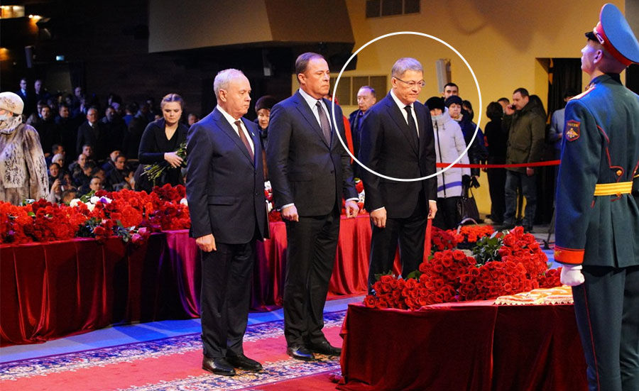 Глава Башкирии Радий Хабиров на похоронах Муртазы Рахимова, 13 января 2023 года