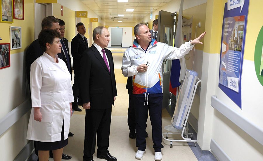 Посещение детского реабилитационного центра. Ни одного больного глава государства не увидел — центр к моменту его помещения не успели открыть, 1 июня 2023 года