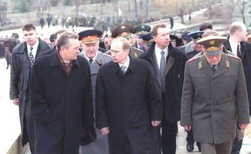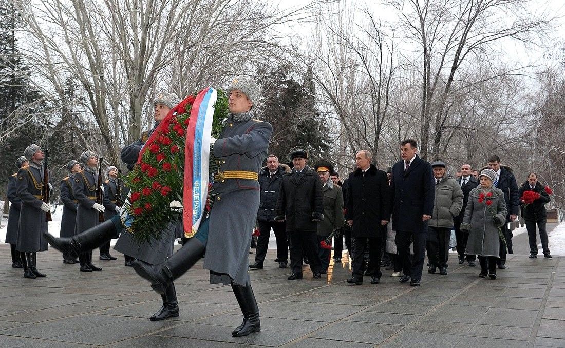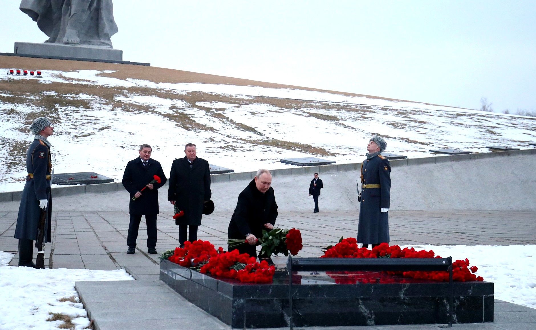 2023 год, Путин на Мамаевом кургане вместе с волгоградским губернатором Андреем Бочаровым и полпредом Владимиром Устиновым