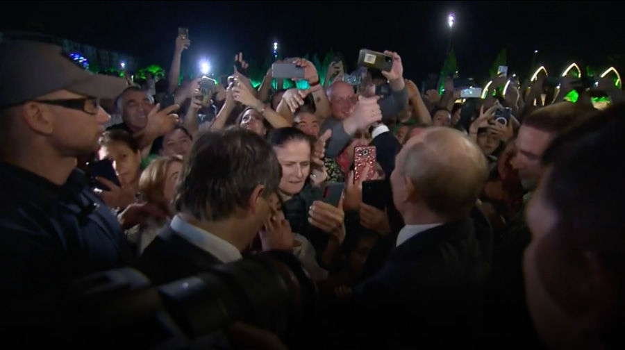 Именно такое расстояние казалось сотрудникам президентского протокола критичным, и они решили его четко обозначить. Но на этот раз не забором, который бы слишком сильно бросался в глаза на фотографиях и видео. Работников выстроили вдоль красной черты, которую нельзя было переступать (по крайней мере, никто из них не решился это сделать).