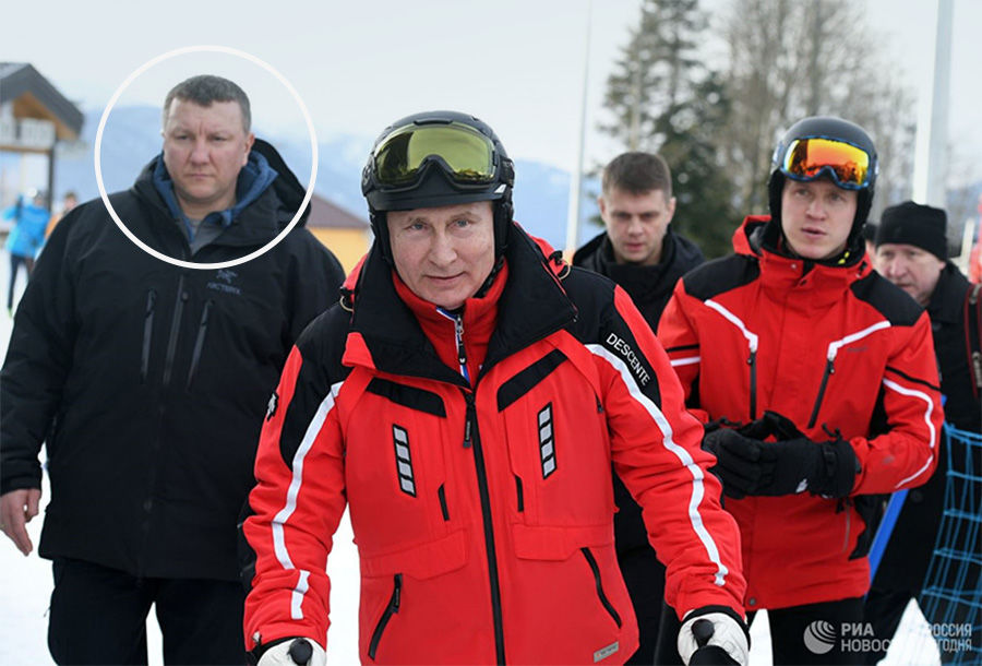 Не стоит думать, что, дистанцируясь от народа, Путин остается один. В этом тексте мы будем показывать вам людей, которые по долгу службы находятся рядом с главой государства. На фото ниже мы видим двух офицеров, которые по крайней мере до 2019 года постоянно сопровождали президента, охраняя так называемый «ядерный чемоданчик». Один из них — это капитан первого ранга Дмитрий Шумейко. Впрочем, в телефонных книжках коллеги по Кремлю записывают Шумейко проще — «Дима-кнопка».