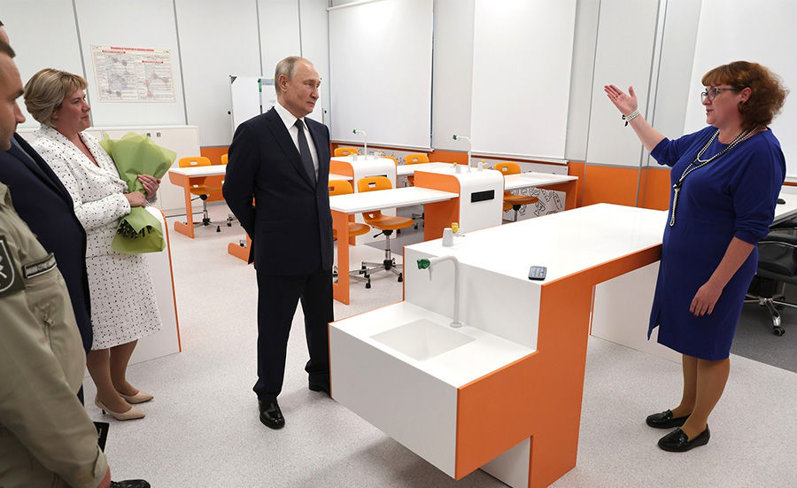 1 сентября Путин сначала пообщался с заранее отобранной группой школьников в Солнечногорске под Москвой, а поздно вечером поехал посещать школу в тверское село Тургиново (откуда родом его предки) — там рядом с ним были несколько учителей, но ни одного ученика. Так же происходит и с больницами: