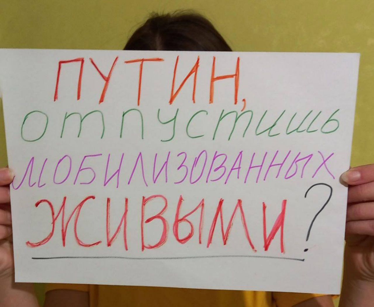 Подписчицы телеграм-канала «Путь домой», который координирует активность инициативных групп жен и семей мобилизованных, требующих их возвращения с войны, выкладывают свои фото с обращениями к президенту Владимиру Путину.