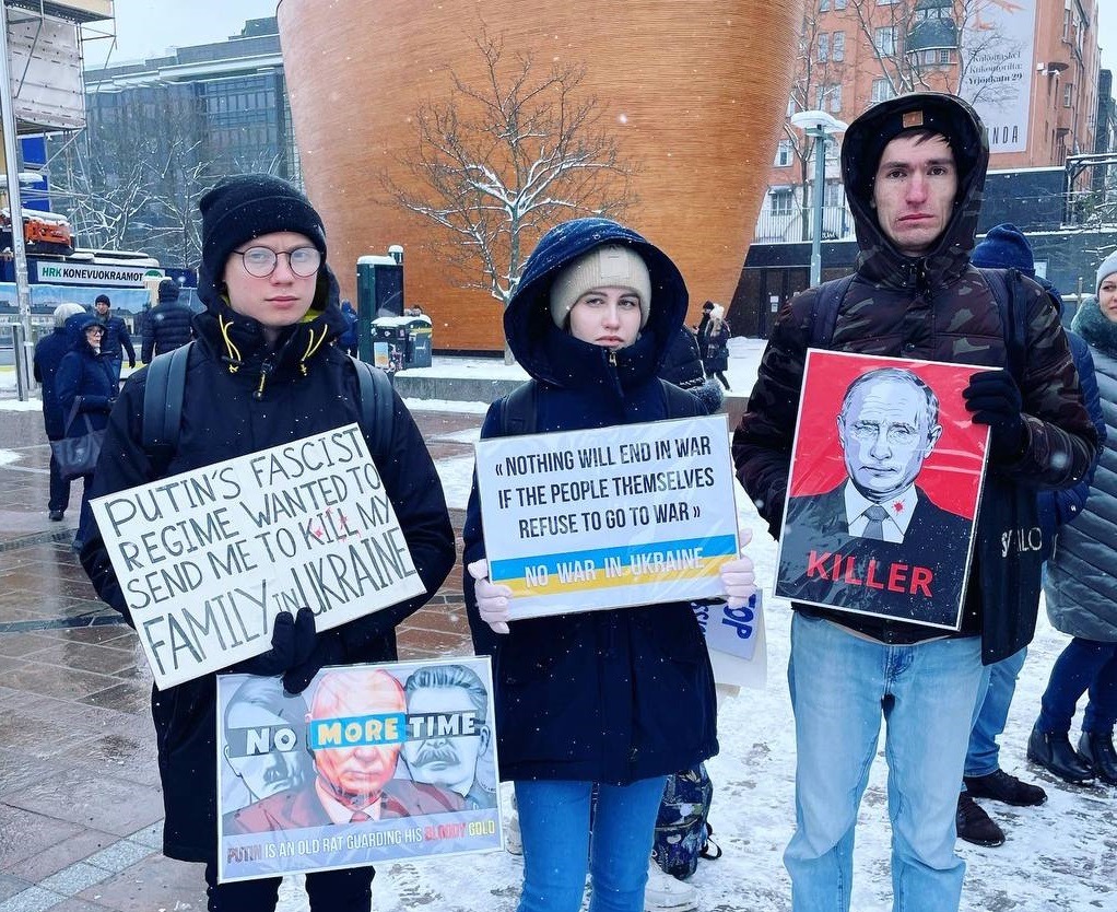 На прошлой неделе у российских активистов был юбилейный – десятый – митинг. "Мы стараемся, проводим их каждое 24-е число в Лоймаа у гипермаркета "Призма" или в других городах, – приглашает к участию Святослав. – Финны фоткаются с нами, предлагают помощь. Автомобилисты, проезжая, поднимают большой палец вверх. Плакаты печатаем в библиотеке с помощью программы Canva. Мой фаворит – плакат "Путин с кляксой крови на воротнике", а внизу надпись – киллер! Он хорошо читается и попал на первые страницы финских и мировых СМИ на большом шествии в Хельсинки в годовщину российского нападения".
