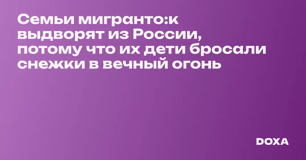 Семьи мигранто:к выдворят из России, потому что их дети бросали снежки в вечный огонь