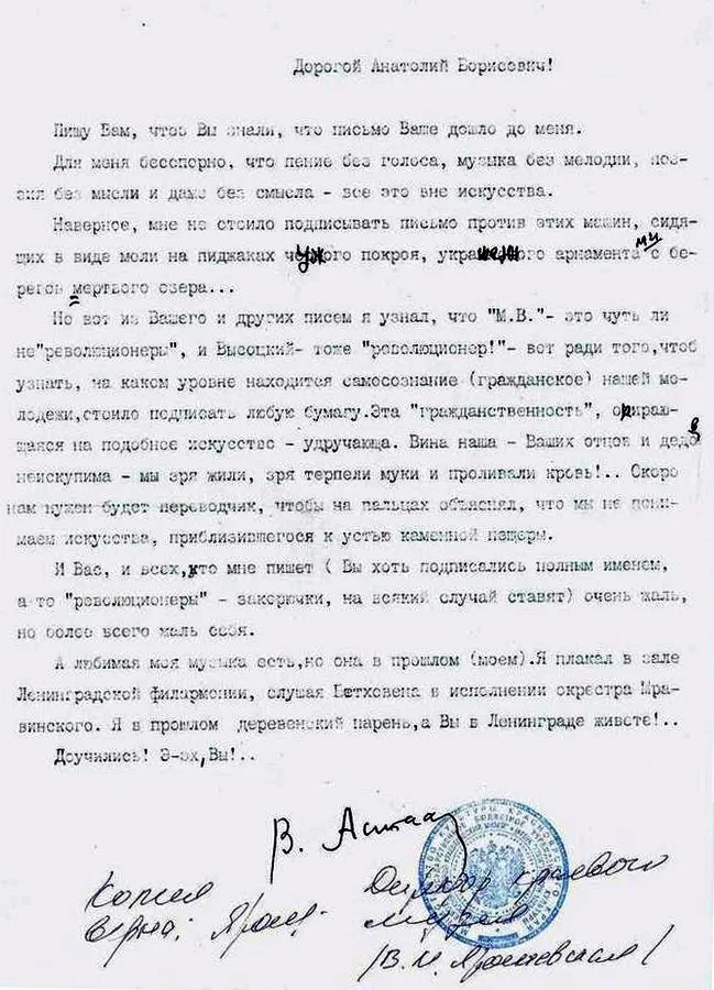 И почему в таком случае комсомольцам — «беспокойным сердцам» — было не покритиковать чуждую именно им «Машину»? «Каждый, право, имеет право». И это прекрасно одним уже потоком писем в поддержку «Машины», обрушившемся затем на редакцию, это прекрасно, что будущий «чикагский мальчик» и писатель-фронтовик рассуждали о музыке и поэзии (кому только это помогло).
