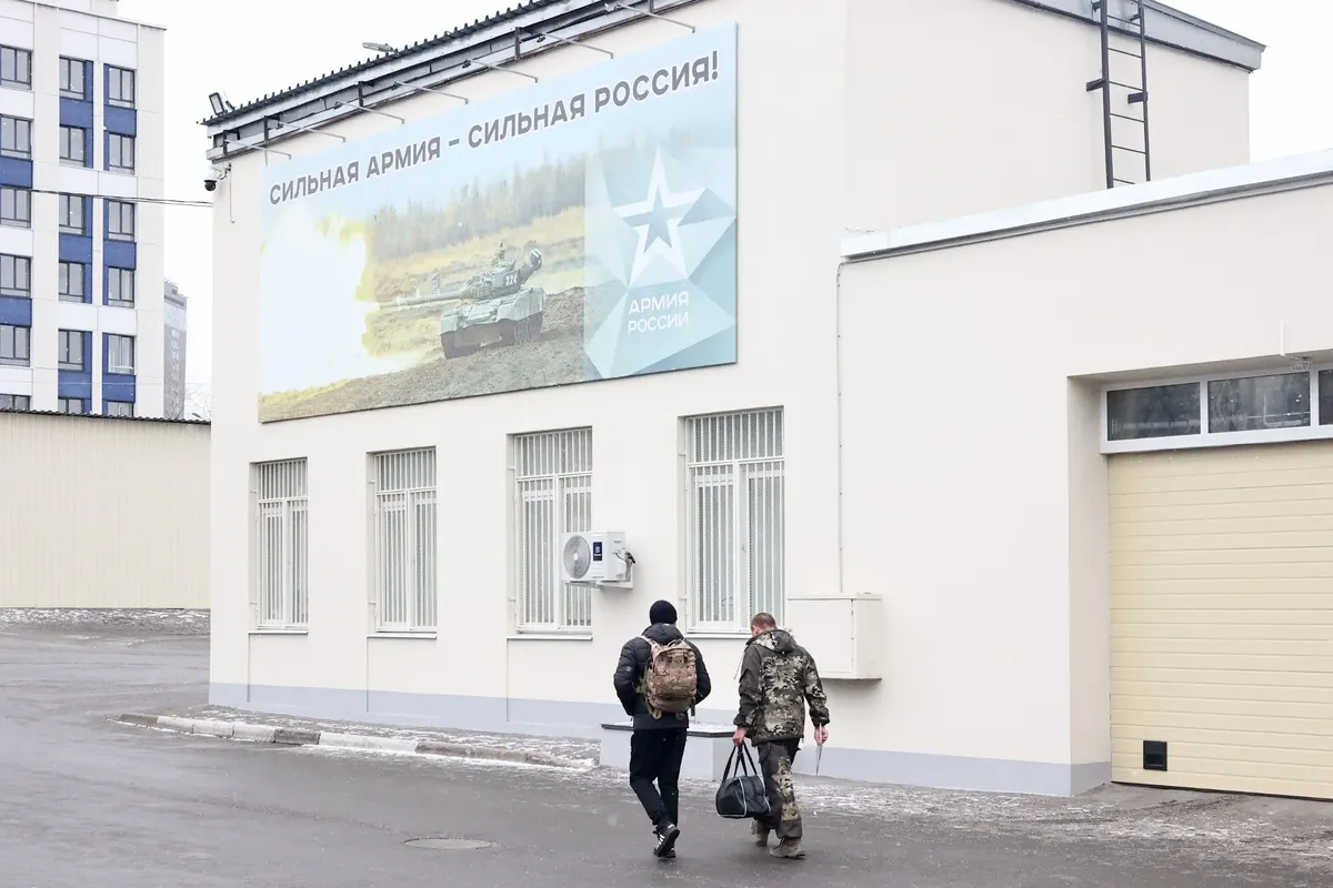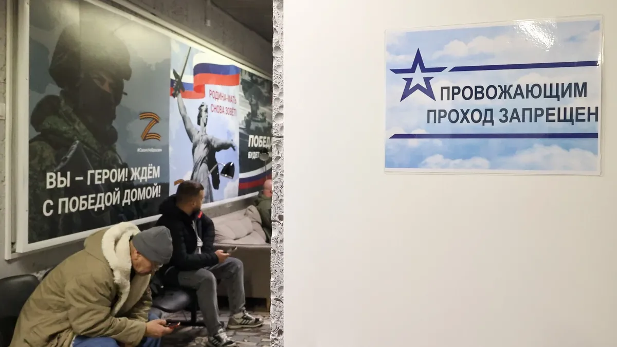 Мужчины в едином пункте отбора на военную службу по контракту. Фото: Сергей Петров / NEWS.ru / TACC