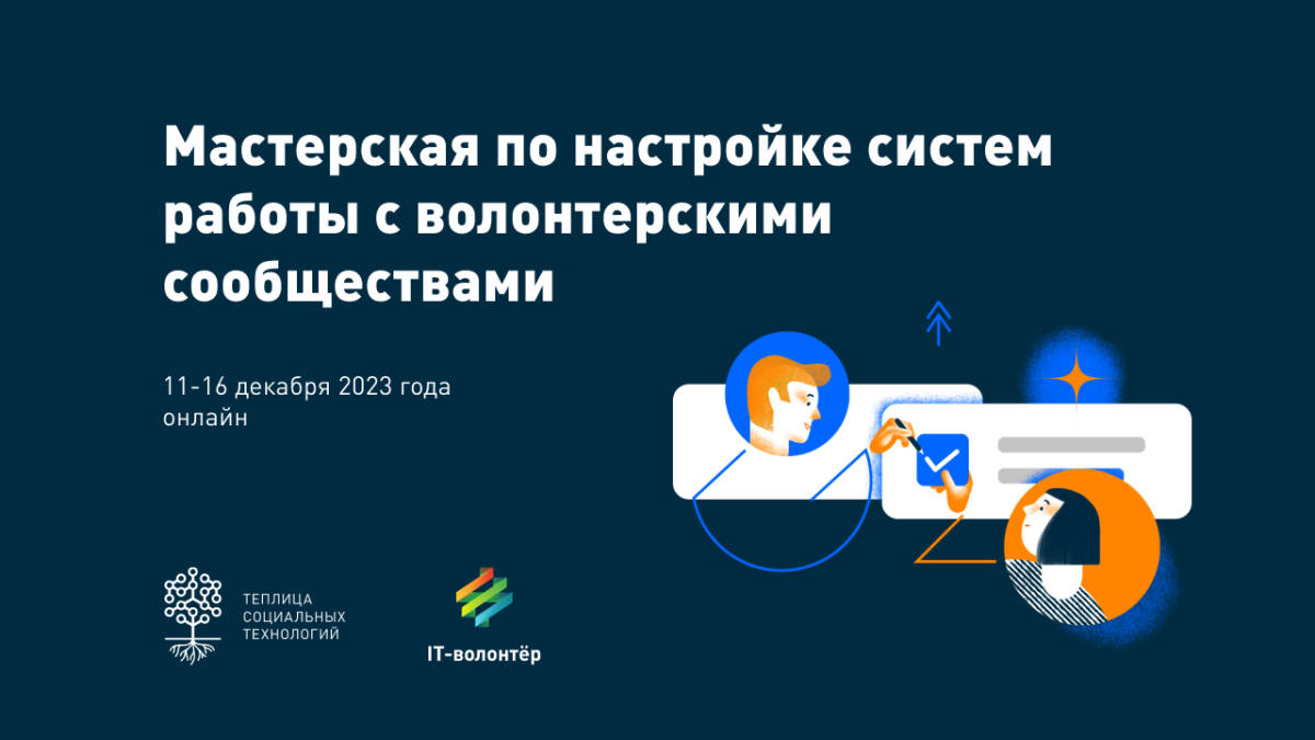 Теплица приглашает организации и проекты вместе разработать и настроить системы управления работой волонтеров (условно называемые нами “volunteer management system”). На мастерской IT-специалисты и тренеры помогут разобраться и отстроить основные процессы: от точки входа волонтеров в проект до хранения данных и трекинга задач. Такие системы и решения помогут вашему проекту координировать работу команды при распределении задач среди десятков или сотен людей. Мероприятие пройдет онлайн, с 11 по 16 декабря 2023 года. Мастерская проводится при поддержке ОВД-Инфо.