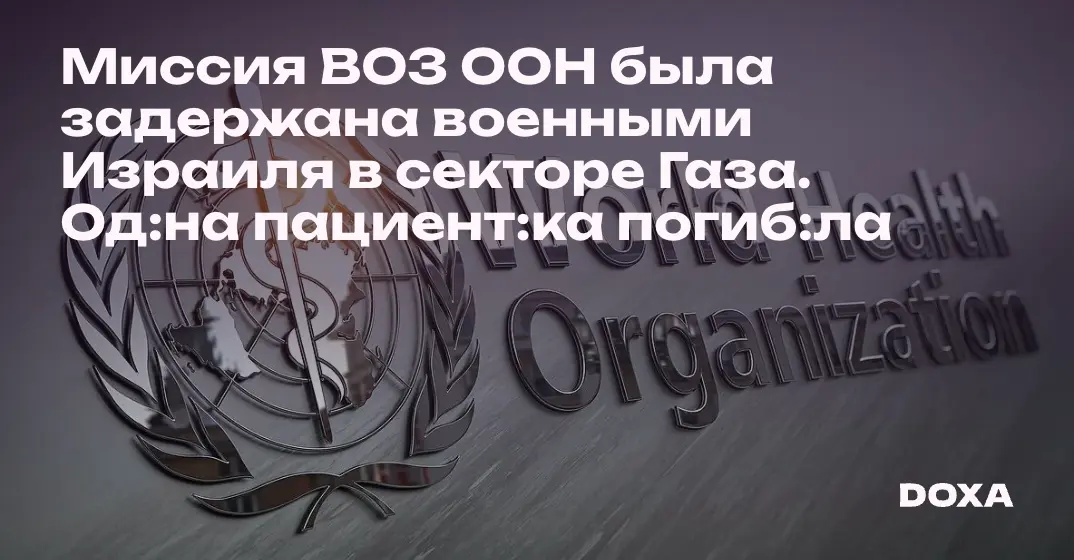 Миссия ВОЗ ООН была задержана военными Израиля в секторе Газа. Од:на пациент:ка погиб:ла