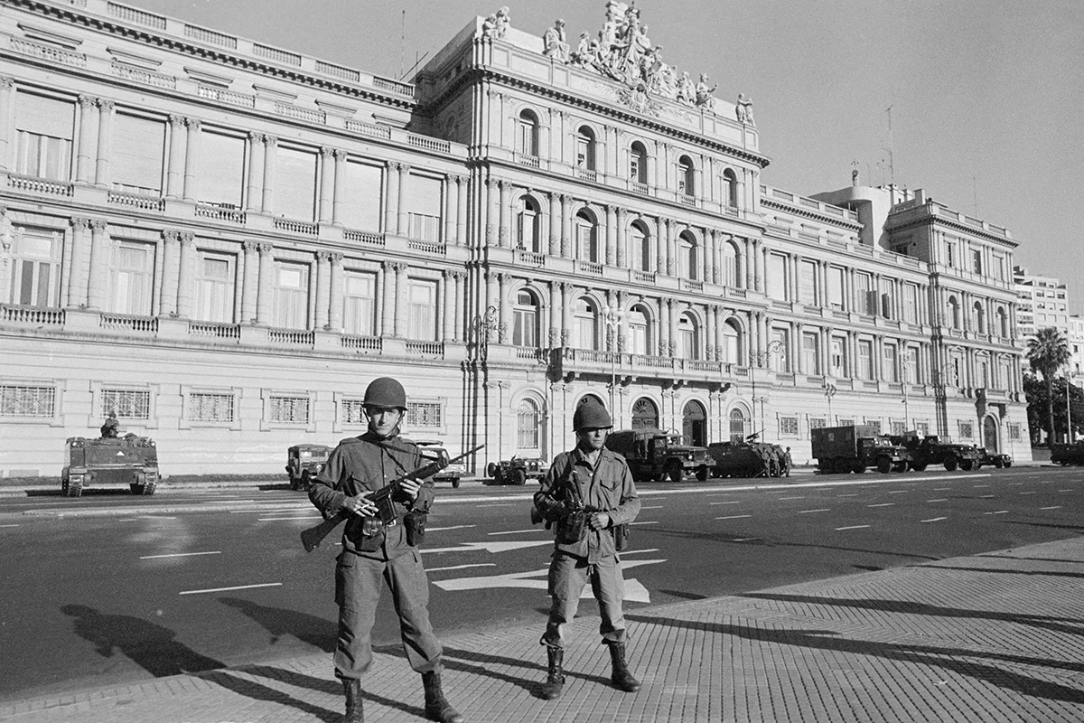 Казармы откликнулись 24 марта 1976 года. «По телевидению показали, как арестовали Исабель, посадили ее в вертолет и увезли. Объявили рано утром, что по просьбе народа с целью защитить мир на территории Аргентины от всяких левых движений власть берет военная хунта. Я помню, как везде появились военные, почему-то все высокие с усами. То ли от страха так казалось, то ли специально выставляли таких, что посмотришь на них — и дух захватывает», — рассказывает адвокат.