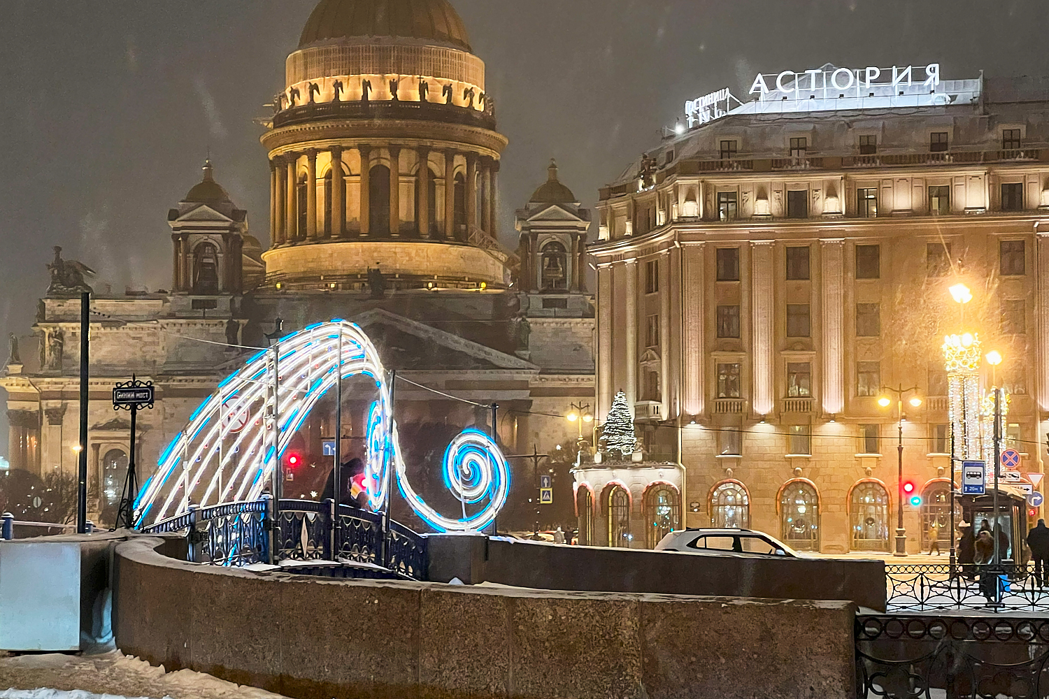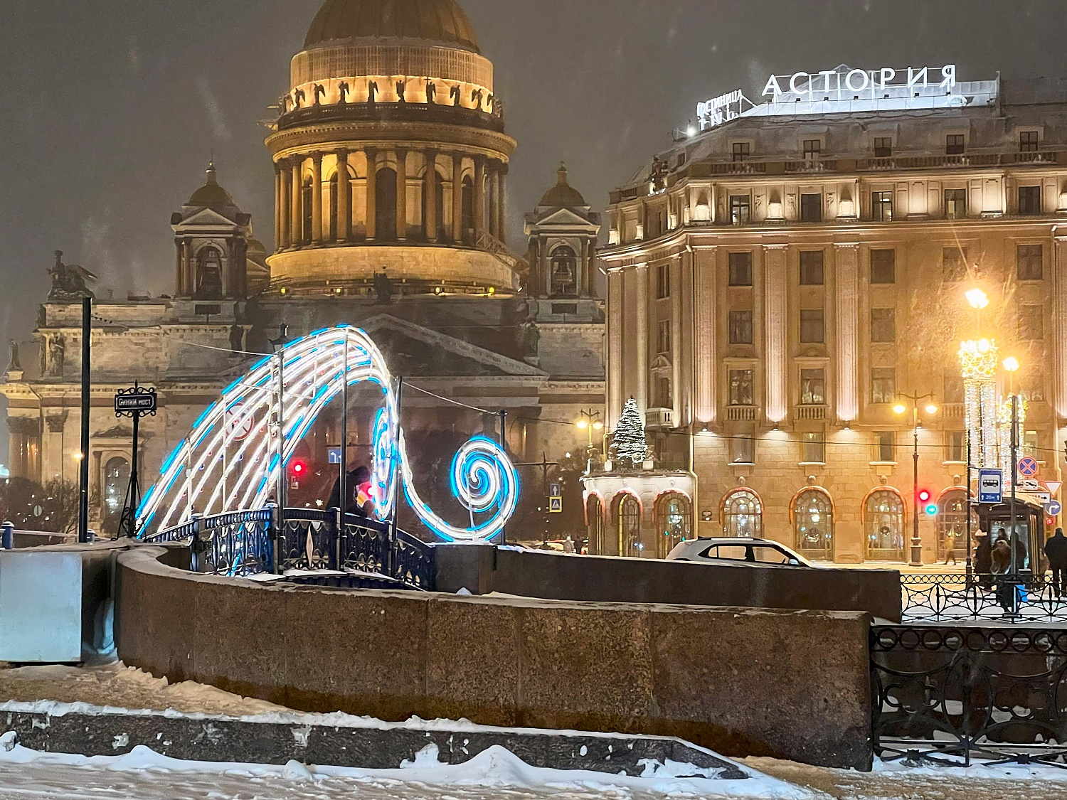 Мы прошли по Петербургу и посмотрели, как выглядят световые композиции, которыми украсили город этой зимой.