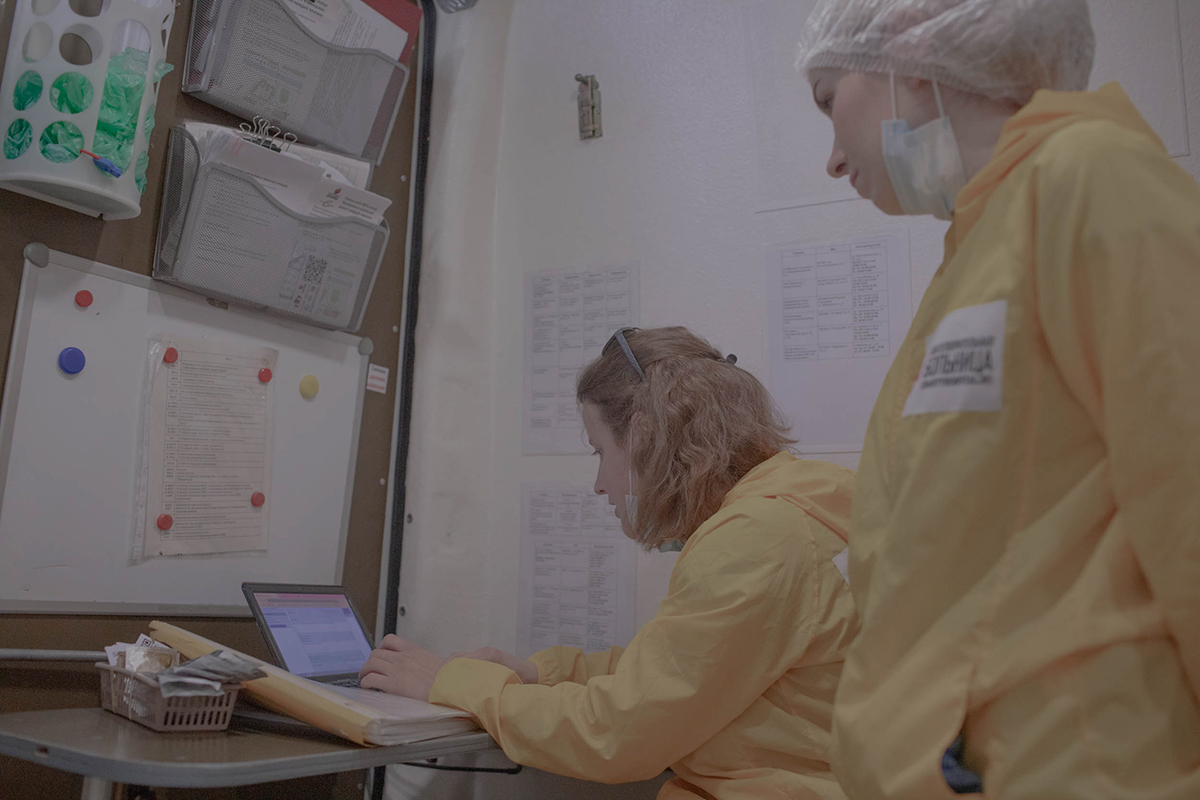 Врач Ника Булавинова заполняет карточку пациента в специальной программе. Каждую смену на стоянки выезжает новая команда медиков, и общая система учета помогает отследить историю болезни пациента. Санкт-Петербург