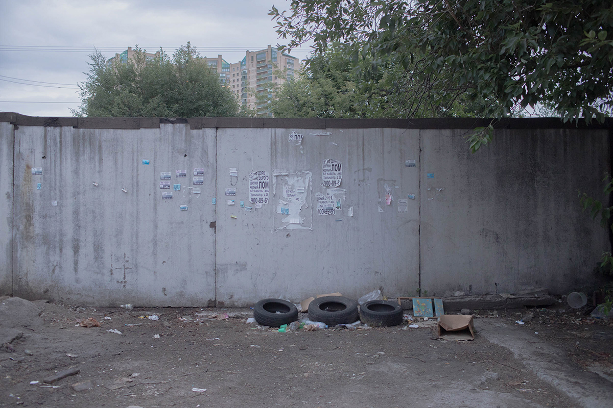 Стоянка мобильной клиники у железнодорожной станции Удельная. На заборе старые объявления о приеме на работу в «рабочие дома», куда часто попадают бездомные в надежде заработать. Чаще всего люди работают за кров и еду, денег хватает только на сигареты. Иногда у людей отбирают документы, принуждают к труду и удерживая насильно. Санкт-Петербург