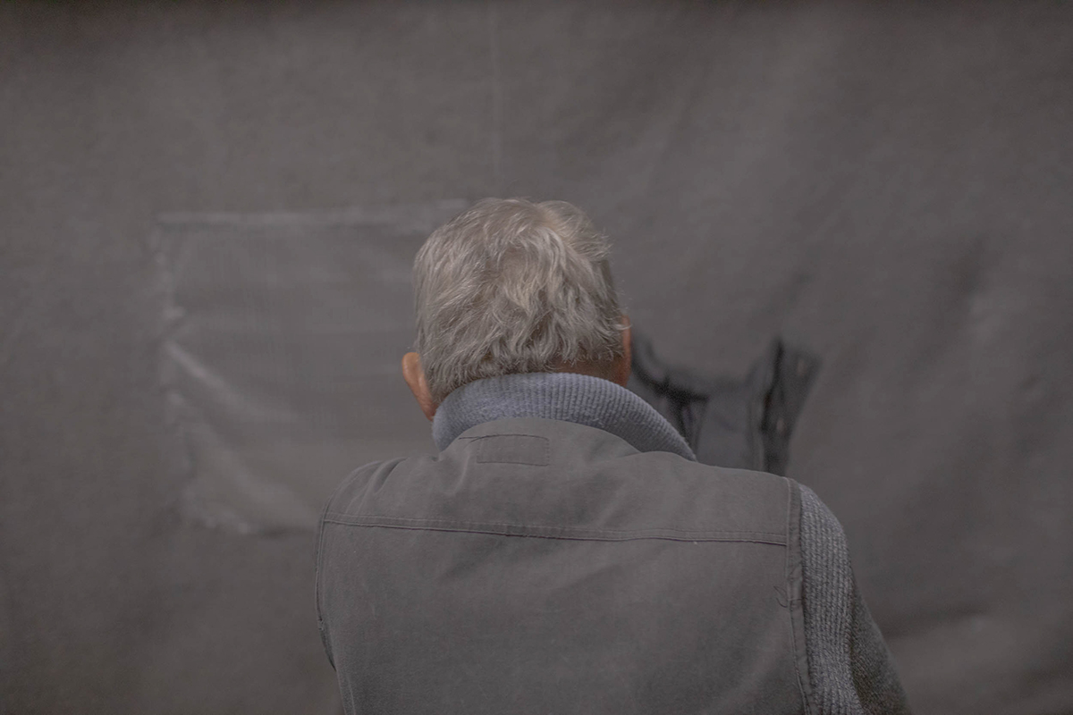Бездомный мужчина во дворе ночного приюта у железнодорожной станции Обухово. Медики мобильной клиники «Благотворительной больницы» приезжают вести прием пациентов в ночной приют каждый вторник. Санкт-Петербург