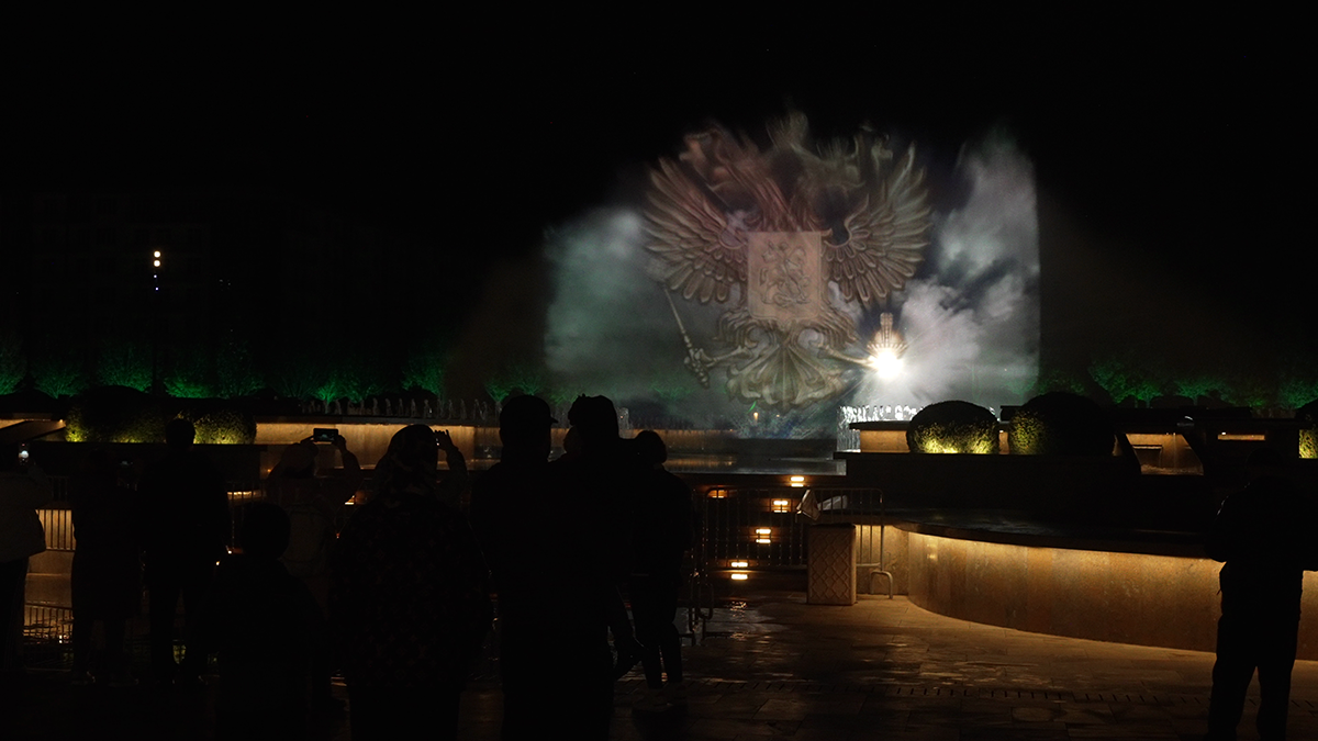 Цветомузыкальный фонтан в Дербенте. Музыкальная программа завершается песней Олега Газманова «Россия». На водяную взвесь проецируются храмы, солдаты и государственная символикаФото: Владимир Севриновский Женщина из Махачкалы рассказала журналисту Le Monde Бенуа Виткину, что после штурма аэропорта увезла детей на неделю в другой район в сопровождении вооруженных людей.