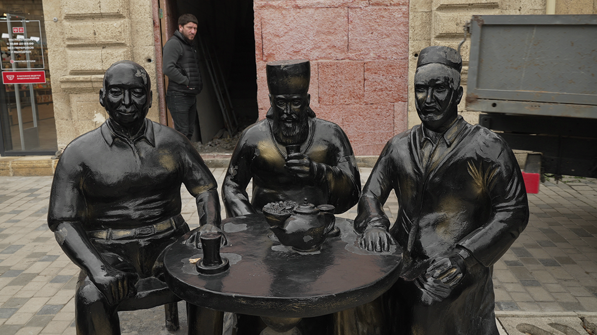 Скульптурная композиция в Дербенте, изображающая представителей трех авраамических религий за совместным чаепитиемФото: Владимир Севриновский На пике протеста десятки тысяч митингующих ингушей три недели занимали центр столицы республики, поддерживая там порядок и чистоту. В многонациональном Дагестане подобное единение вряд ли возможно. Но и там еще семь лет назад крупные акции протеста были относительно упорядоченными.