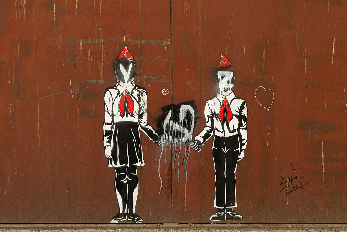Стрит-арт возле Дворца детского творчества в Махачкале. Изначально у пионера и пионерки были лица Сталина, потом их замазали, и кто-то нанес поверх клякс буквы V и ZФото: Владимир Севриновский Махачкалу наводнили баннеры в поддержку Палестины. Они мелькали на автомобилях, на автобусных остановках, а один, в самом центре города, был наклеен поверх головы солдата на вербовочном армейском плакате. Журналист Идрис Юсупов выходил на ежедневные пикеты с палестинским флагом. 29 октября на центральной площади Махачкалы полиция разогнала, наверное, первый в истории Северного Кавказа митинг женщин в никабах. Еще недавно этот вид хиджаба был в республике в диковинку.