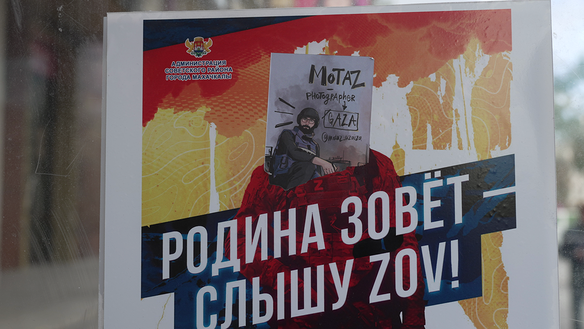 Наклейка на агитационном плакате на автобусной остановке в центре МахачкалыФото: Владимир Севриновский «Ее племянница мне говорит, что она целыми днями смотрела видео о происходящем в Палестине, на гибнущих детей, постоянно плакала, — объясняет адвокат. — Видимо, боялась, что евреи сюда заезжают. В средствах массовой информации публикуют, что они также попали и в Палестину. Что, если бы они здесь сделали как в Израиле?»