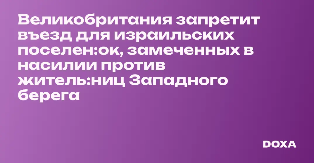 Великобритания запретит въезд для израильских поселен:ок, замеченных в насилии против житель:ниц Западного берега