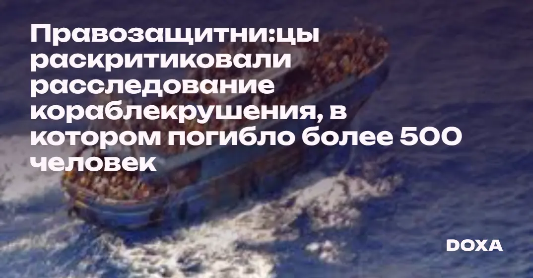 Правозащитные организации Human Rights Watch и Amnesty International выступили с критикой властей Греции, проводивших расследование о кораблекрушении в Средиземном море 14 июня 2023 года. Тогда после катастрофы были обнаружны тела 82 человека, тела более 500 человек так и не были найдены. 104 бежен:кам удалось спастись.
