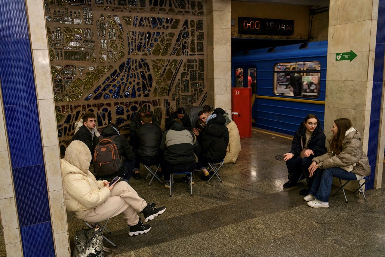 Жители Киева пережидают российский обстрел в метро. 14 декабря 2023 года