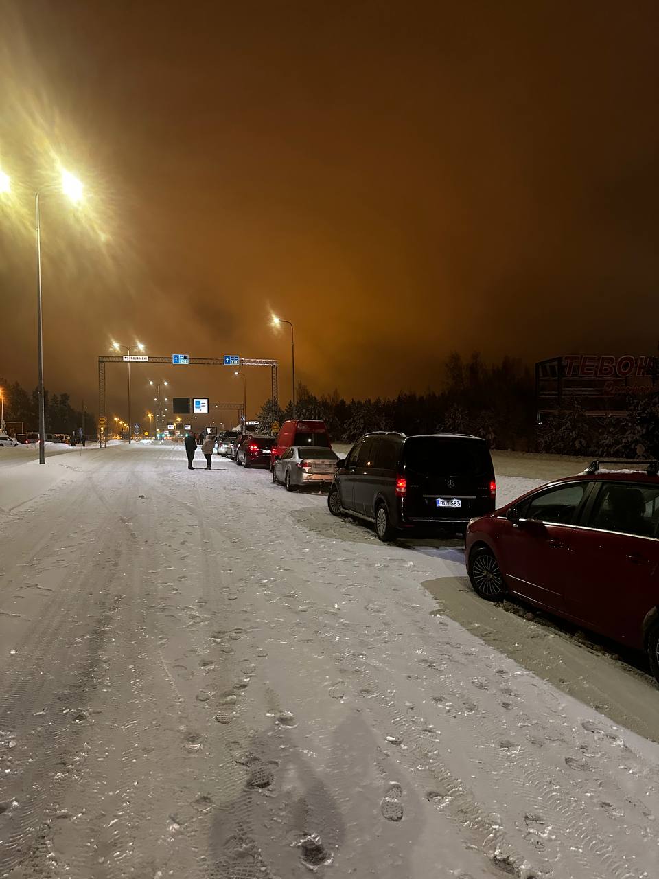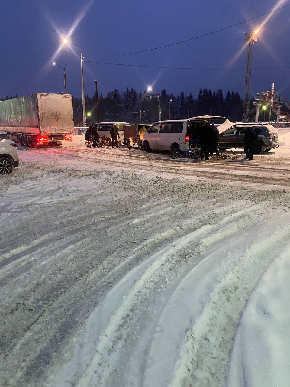 - В Вяртсиля к 10 утра на дороге в сторону Финляндии собралось около 100 машин. В одном из дорожных чатов опубликовали видео, на котором столпились люди с велосипедами. Автор ролика говорит, что им их продали за 500 долларов. Также в чатах появилось фото, на которых велосипеды выгружают из микроавтобусов. Велосипеды для пересечения границы как правило используют беженцы из стран Африки и Ближнего Востока, наплывом которых Финляндия и объясняла закрытие КПП.
