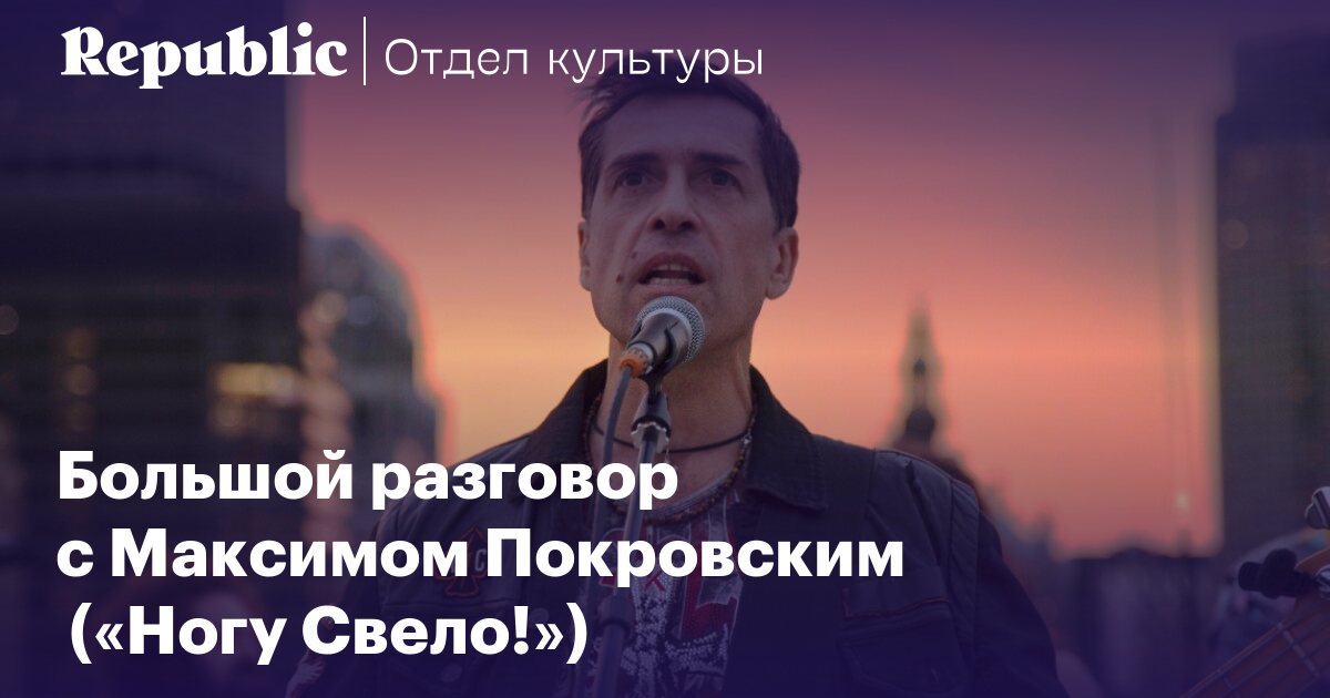 Режиссер и продюсер Рома Либеров выпустил в открытый доступ фильм-концерт «Мы есть!», в котором участвуют российские артисты с антивоенной позицией — от Андрея Макаревича и Би-2 до Noize MC и «Ногу свело!». Поговорили с лидером «Ногу свело!» Максимом Покровским об этом проекте, а также о рокерах на приеме у Суркова, общности России и Украины и утопическом виртуальном государстве российской оппозиции.