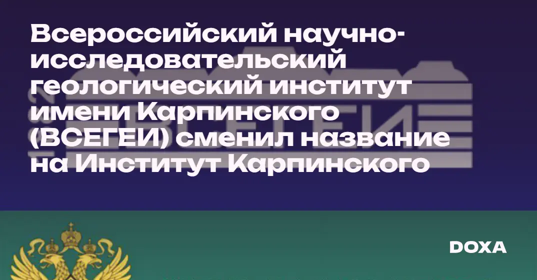 Всероссийский научно-исследовательский геологический институт имени Карпинского (ВСЕГЕИ) сменил название на Институт Карпинского