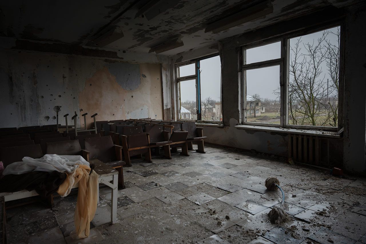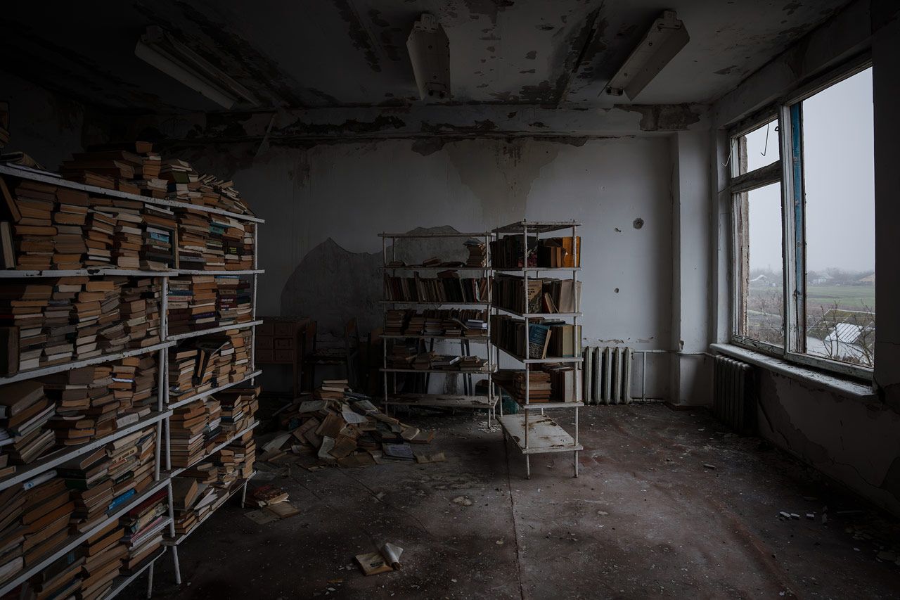 Российские войска захватили поселок Высокополье Херсонской области в марте 2022 года. Через полгода после начала полномасштабного российского вторжения ВСУ освободили населенный пункт. Тогда же местные власти сообщали, что в ходе боев поселок, где до войны жили около четырех тысяч человек, был разрушен на 80%. На этих фотографиях, сделанных 13 декабря, школа Высокополья — одно из зданий, пострадавших во время войны.