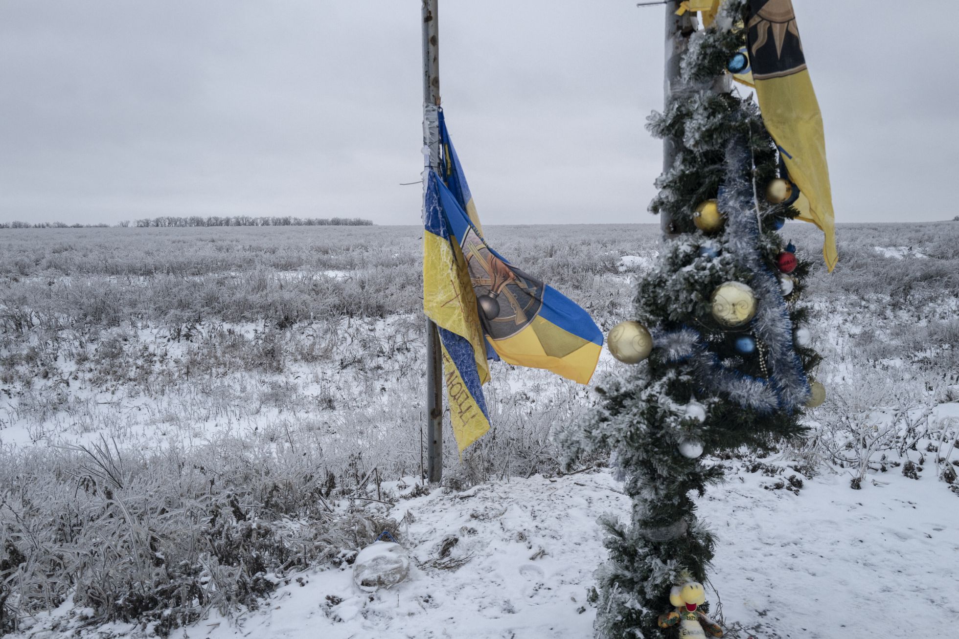 Бойцы ВСУ, воюющие под Бахмутом, готовятся к Рождеству. В пяти километрах от фронта волонтеры поставили наряженную елку