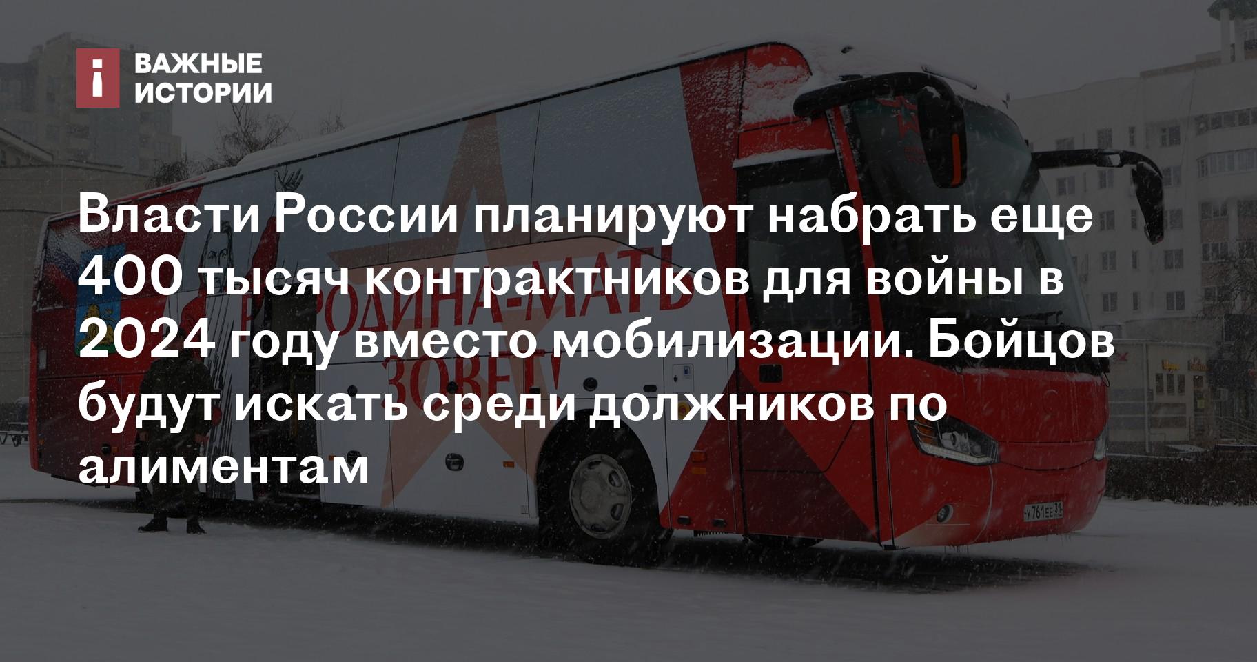 Власти России планируют набрать еще 400 тысяч контрактников для войны в 2024 году вместо мобилизации. Бойцов будут искать среди должников по алиментам
