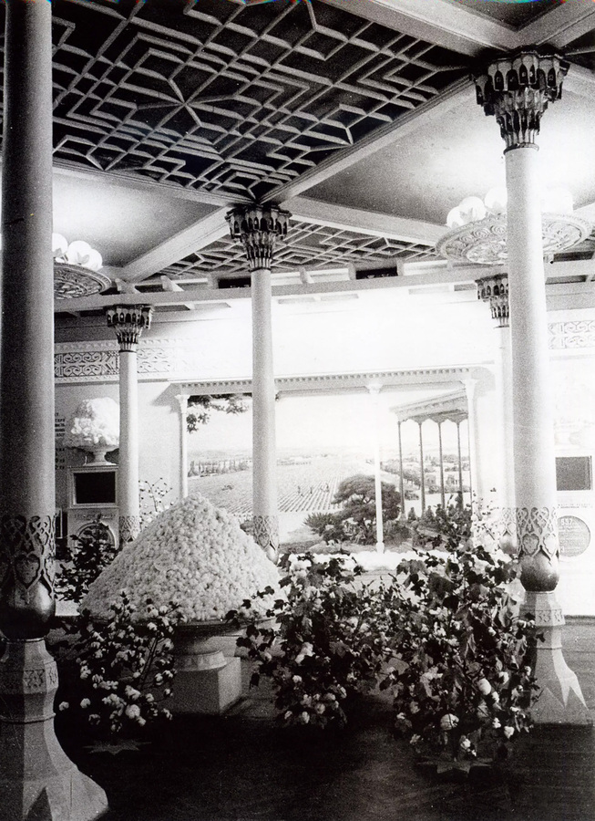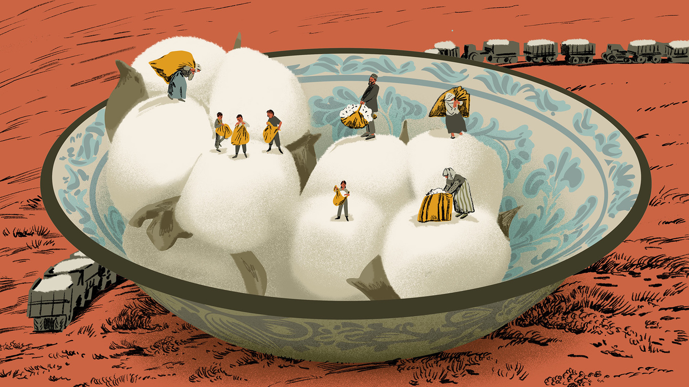 Москва, 1 августа 1939 года. Открытие Всесоюзной сельскохозяйственной выставки, позже переименованной в ВДНХ. Первые зрители входят в павильон Узбекской ССР. Центральный зал потом так и назовут: «хлопковая комната». Главная скульптурная композиция, «Ленин и Сталин в Горках», утопала в белоснежных соцветиях. За скульптурой возвышался хирман — пирамида, в которую складывают хлопок-сырец во время сбора урожая. На самом верху пирамиды — цифра 1 504 200: столько тонн хлопка собрали в Узбекистане в 1938 году. В 1983 году Узбекская ССР должна была поставить Союзу шесть миллионов тонн хлопка.