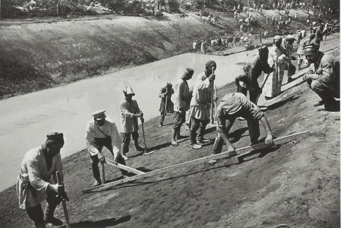 В 1939 году руководство Узбекистана запросило у Москвы разрешение на строительство Большого Ферганского канала, чтобы орошать «бедные водой» районы. Канал должен был протянуться на 270 километров. Строительство, в котором приняли участие 160 тысяч колхозников, завершилось в рекордные сроки — за 45 дней. Только девять процентов земляных работ было выполнено с помощью техники и взрывчатых веществ, остальное — ручной труд.