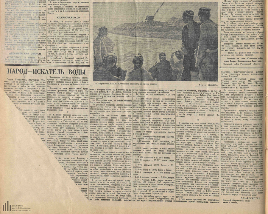 «Мог ли Сталин, благороднейший друг народов Советского Союза, не откликнуться на заветное желание узбекского народа? — вопрошал автор статьи в новогоднем выпуске „Комсомольской правды“ 1939 года. — „Прекрасная идея! — сказал товарищ Сталин. — Поддержим!“»