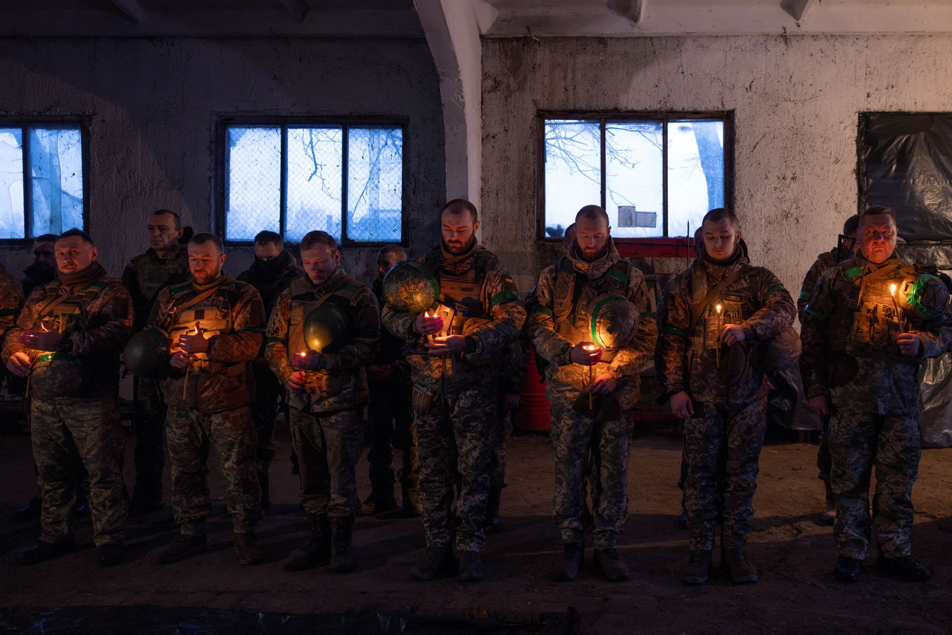 Военнослужащие 14-й отдельной механизированной бригады ВСУ празднуют сочельник возле линии фронта под Купянском. В 2023 году Украина впервые отмечает Рождество по новому календарю — не 7 января, а 25 декабря.