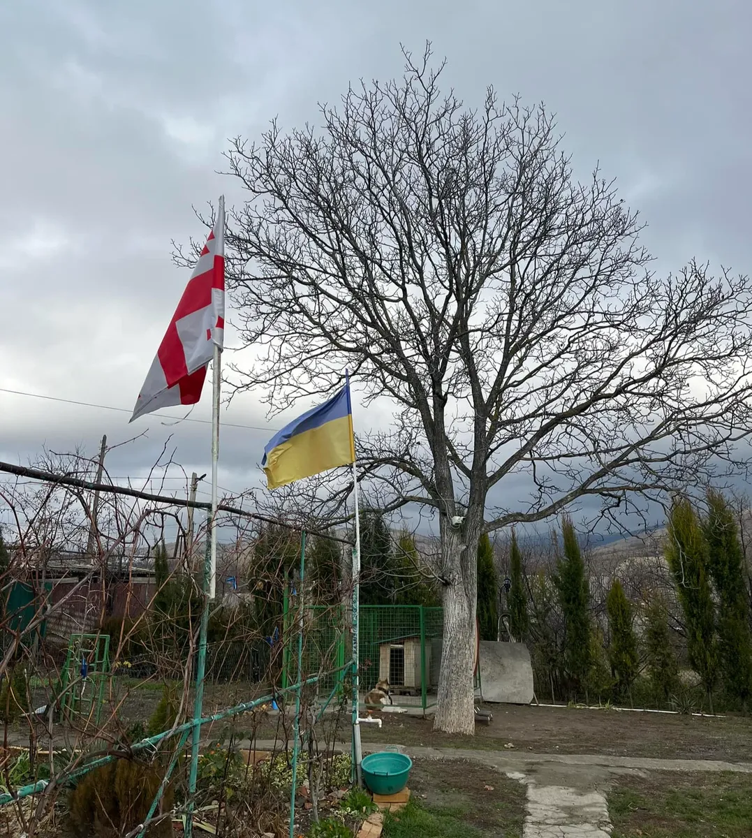 Несмотря на это, во дворе дома Люды есть не только грузинский, но и украинский флаг.