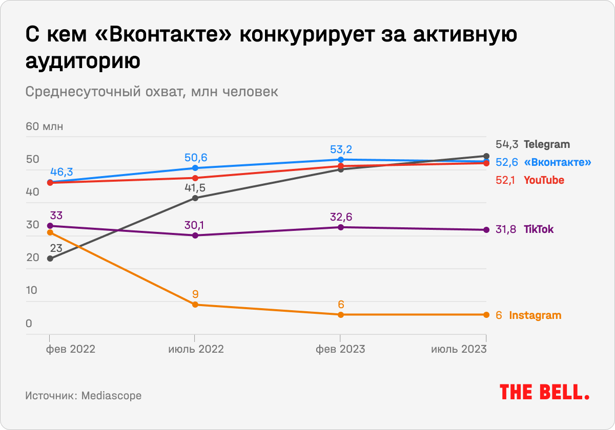 При этом публично VK постоянно отчитывается об успехах. В середине декабря группа подвела итоги 2023 года: мобильное приложение «VK Видео» установили 2,6 млн раз с момента запуска в сентябре, месячная аудитория сервиса достигла 67,9 млн пользователей. Для сравнения: месячная аудитория YouTube в России в ноябре, по данным Mediascope, составляла 95 млн пользователей, каждый день сервис в среднем открывали 54 млн пользователей рунета.
