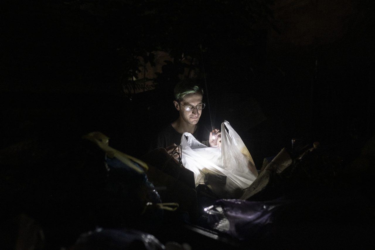 Вечером Митя использует фонарь, чтобы видеть содержимое мусорных пакетов лучшеФото: Сергей Строителев для ТД Я с трудом выбрал этот кадр по просьбе редакции. Дело в том, что вся история про россиян-фриганов «Фрига — идея разумного потребления», покинувших страну после начала СВО и живущих в Тбилиси, очень дорога моему сердцу.